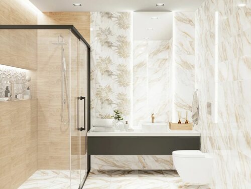Ванная комната - это идеальное место для использования плитки калакатта оро. Ее нейтральный оттенок и мраморная текстура придают ванной комнате роскошный вид. Вы можете использовать плитку калакатта оро для отделки стен, пола или создания акцентных деталей, таких как душевая кабина или ванна.