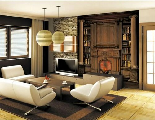 Обои в гостиную с камином