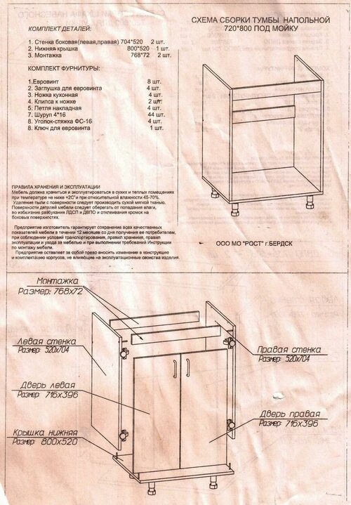 Начните с сборки корпусов кухонной мебели, следуя инструкциям по сборке, предоставленным производителем. Не забудьте использовать крепежные элементы в соответствии с инструкцией.