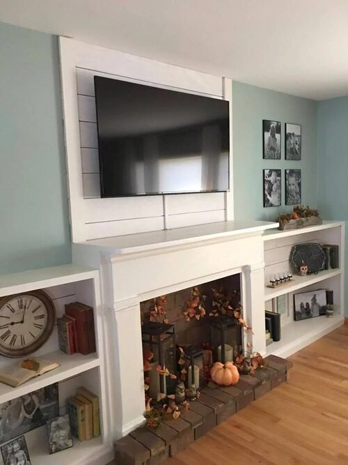 Фотогалерея ниже представляет разнообразные варианты декора фальш-камина с полками по бокам, чтобы вдохновить вас на создание собственного уникального дизайна.