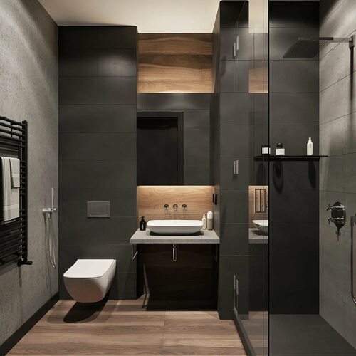 При создании дизайна совмещенного санузла в темных тонах важно учитывать освещение и размер помещения. Правильно подобранные материалы и акценты помогут создать гармоничный интерьер, где темные тона будут выглядеть стильно и элегантно.