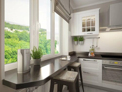 Барная стойка у окна может быть выполнена в различных стилях - от современного минимализма до классической элегантности. Вы можете выбрать материалы и отделку, которые подходят к общему стилю вашей кухни, чтобы создать гармоничное сочетание.