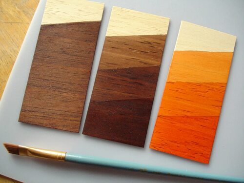 Для создания эффекта натурального дерева используются специальные краски и техники нанесения. Фотографии демонстрируют этапы покраски и процесс имитации текстуры дерева на поверхности МДФ.