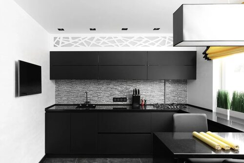 Кухонный гарнитур в небольшую кухню чёрно-белого цвета