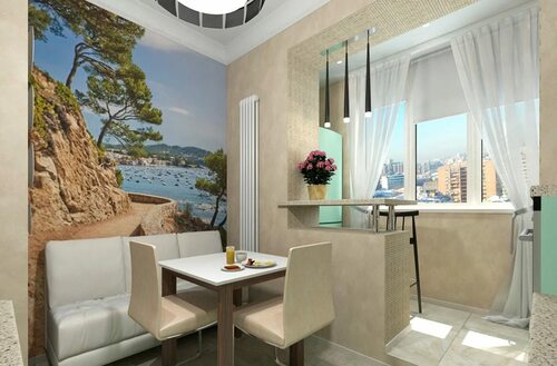 Идеи дизайна кухни и балкона вместе