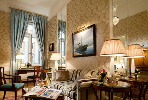 Гранд отель Европа - это воплощение роскоши и элегантности. Интерьер отеля поражает своим изысканным стилем и богатой историей. Каждая деталь интерьера отражает безупречный вкус и утонченность.