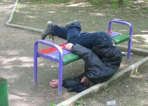 Статья о том, как алкаш спит на скамейке. Много фотографий на тему.