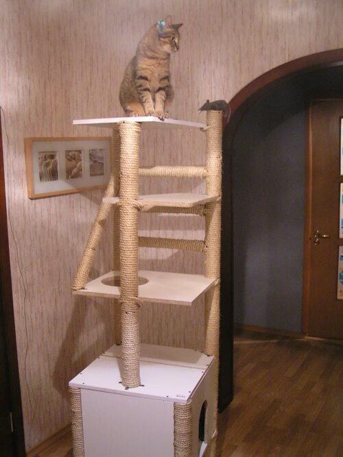 После завершения работ установите этажерку в удобном месте для вашего кота. Наблюдайте, как ваш питомец с удовольствием использует новое место для отдыха и игр.