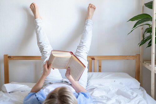 Ноги босиком лежа на кровати