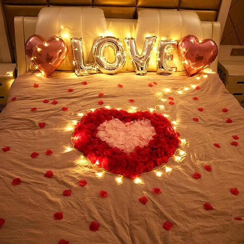 Для создания сердца из роз на кровати вам потребуется большое количество цветов, поэтому рекомендуется купить их заранее, чтобы у вас было достаточно для создания желаемого декора.