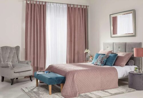 Фотографии интерьеров с использованием штор грязно розового цвета