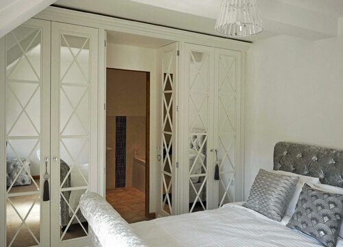 Зеркальные шкафы вокруг двери - это удивительно практичное и стильное решение для организации хранения в прихожей или спальне. Они не только позволяют сэкономить место, но и создают ощущение простора и уютного интерьера.