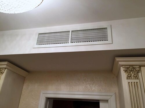 В гостиной решетки канального кондиционера можно использовать как элемент декора или даже как основу для творческих решений. Мы подобрали для вас фотографии, чтобы вы могли увидеть разнообразие возможностей применения решеток в интерьере.