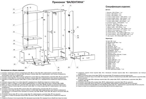 Начните с сборки основы прихожей, следуя инструкции по шагам. Важно правильно соединить детали и затянуть крепежные элементы.