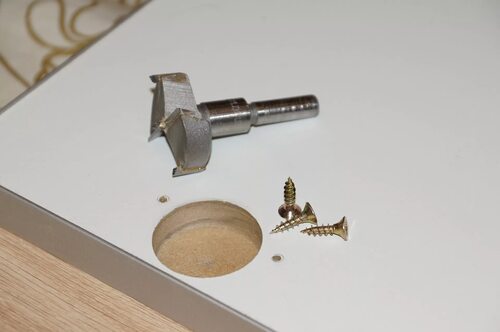 После того как отверстия сверлены, установите мебельные петли в них и закрепите их с помощью шуруповерта. Убедитесь, что петли плотно прилегают к мебельной детали.
