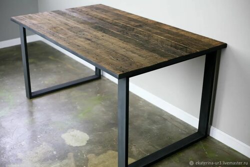 Кухонный стол из профильной трубы и дерева - это отличный способ добавить уникальность и стиль в вашу кухню. Этот дизайн сочетает в себе прочность металла и теплоту дерева, создавая элегантное и функциональное мебельное решение.