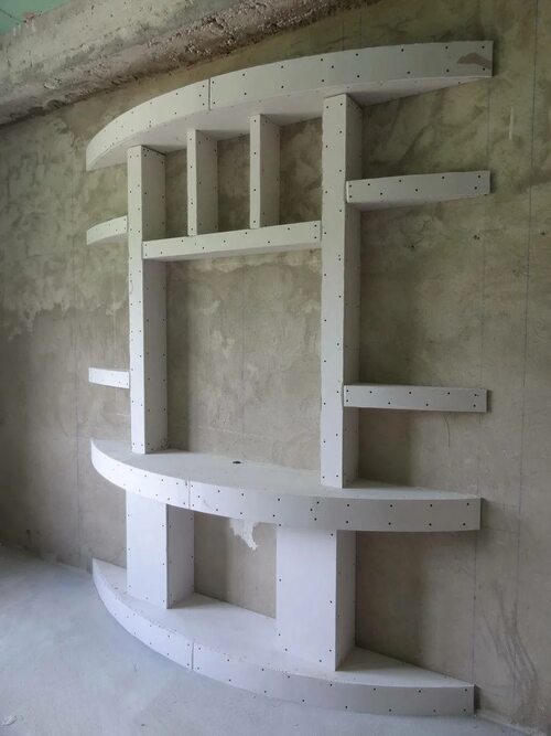 После того как гипсокартон установлен, проведите шпаклевку и отделку полок. После высыхания шпаклевки можно приступить к покраске или облицовке полок.