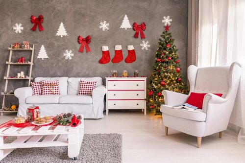 Важную роль в создании новогоднего интерьера играют праздничные акценты. Это могут быть яркие подушки с новогодними принтами, пледы с зимними узорами, декоративные элементы из натуральных материалов, такие как дерево, шерсть, или естественные зеленые ветви. Такие детали помогут добавить в интерьер новогоднюю атмосферу и создать уютный праздничный уголок.