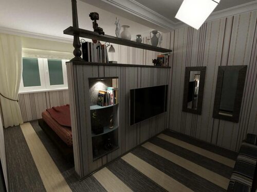 Для более радикального разделения пространства можно использовать перегородки из гипсокартона или других материалов. Это позволит создать дополнительные зоны в квартире, сохраняя при этом естественное освещение и визуальное пространство.
