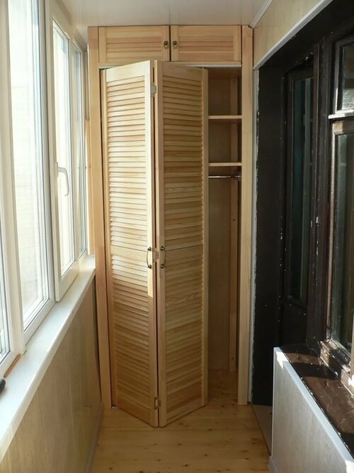 Среди основных преимуществ складных дверей для шкафов на балконе можно выделить: