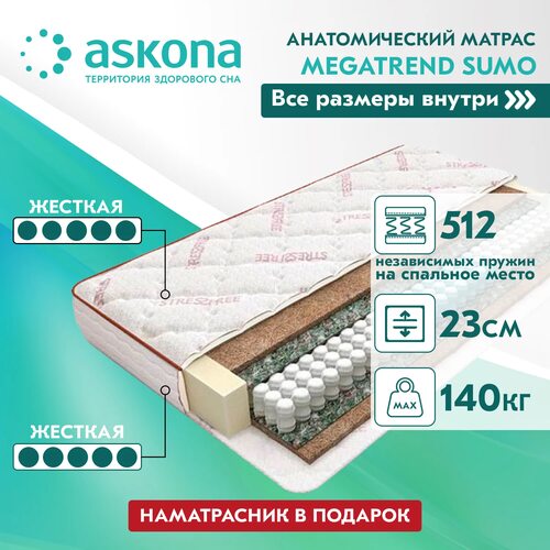Выбирая матрас Askona Megatrend Sumo, вы инвестируете в свое здоровье и комфорт. Благодаря продуманной конструкции и использованию высококачественных материалов, этот матрас прослужит вам долгие годы, обеспечивая идеальные условия для здорового сна.