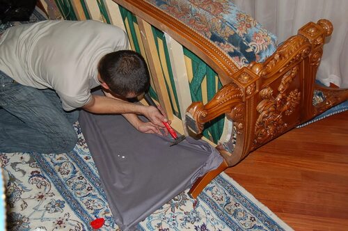 Если обивка дивана повреждена, то замена обивки может потребоваться. В этом случае вам понадобится ткань, нитки, игла и ножницы. Подробные инструкции по замене обивки смотрите на фотографиях.