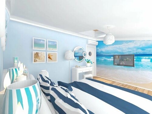Не забудьте также о зеркалах, которые помогут визуально увеличить пространство и придать комнате больше света, что особенно важно для создания атмосферы морского стиля.