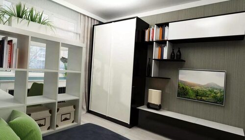 Многофункциональный шкаф с полкой под телевизор представляет собой отличное решение для маленькой комнаты. Такие шкафы обычно оснащены дополнительными полками и ящиками, что позволяет хранить различные предметы и эффективно использовать пространство.