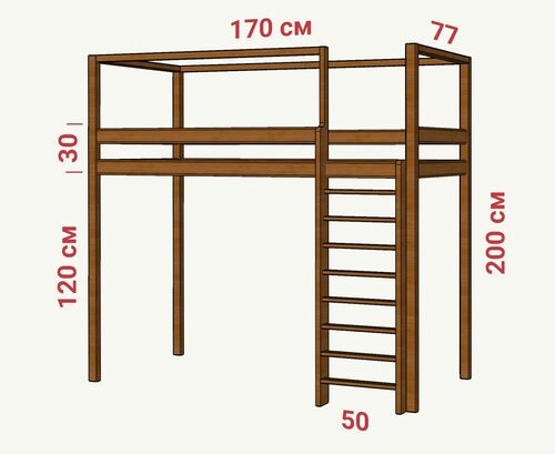 Чертеж детской двухъярусной кровати из дерева с размерами